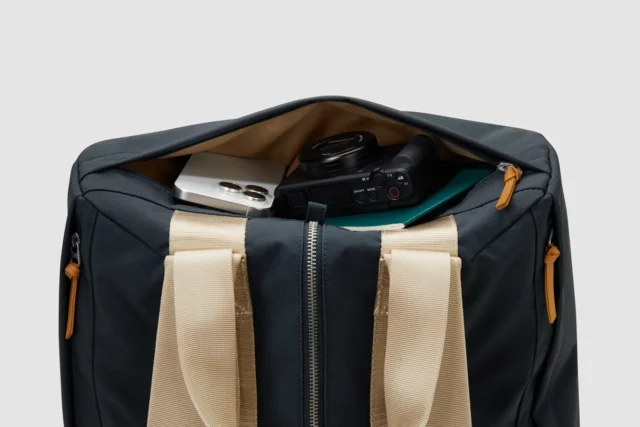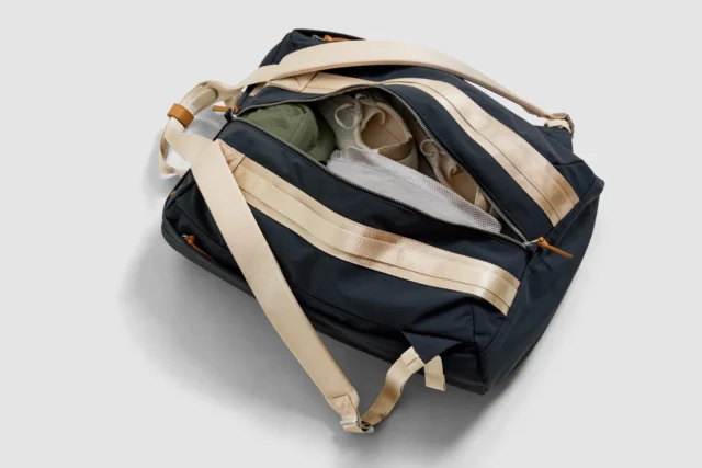 The simple shapes in each bag’s design require fewer fabric panels, minimizing material discarded from cutting and sewing and eliminating waste at the source. The bags also feature other premium material choices—vegetable-tanned leather accents and 100% metal components (aluminum and steel), including straight zippers that extend the life of your purchase.